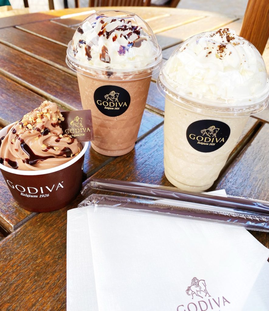 昼くらいから太陽が強くなり少し熱くてGODIVAによりました。 大人はドリンク息子達は カップのアイスとワッフルコーンのアイスを選...